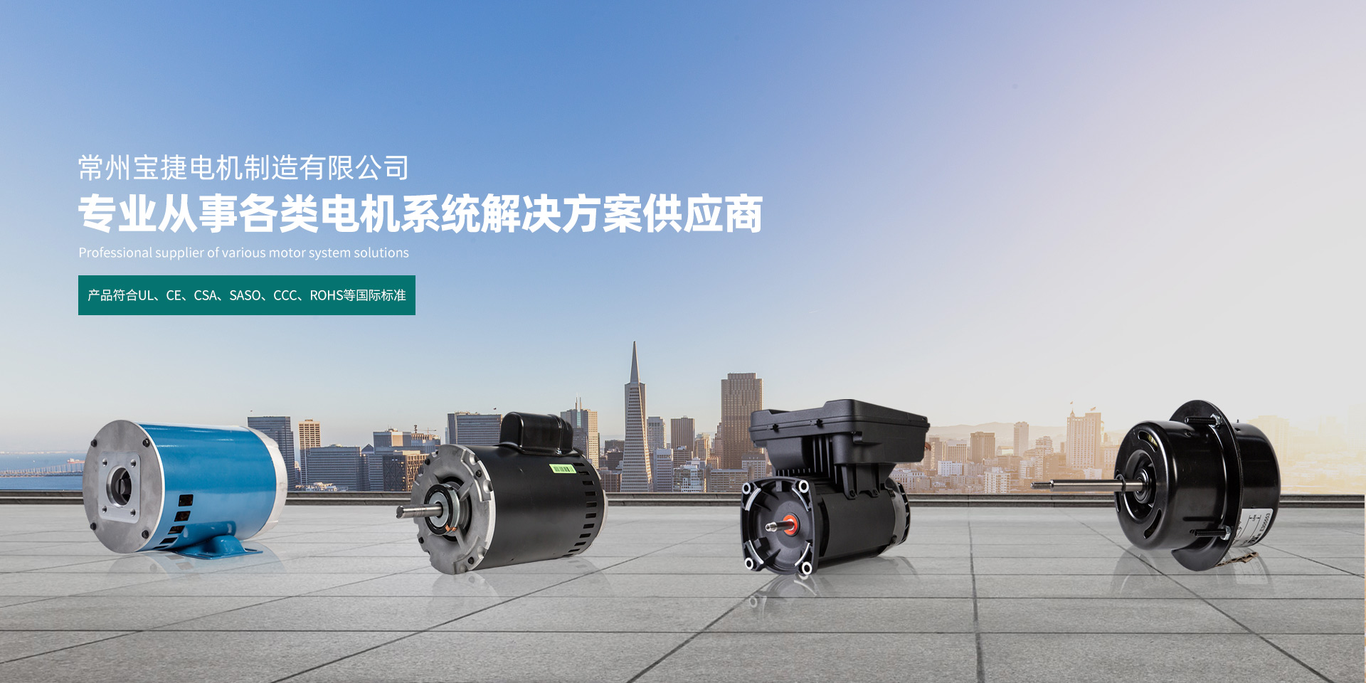 常州寶捷電機(jī)制造有限公司,成立于2001年。專業(yè)從事各類單相交流電機(jī)、高效節(jié)能電機(jī)及機(jī)電一體化產(chǎn)品的設(shè)計(jì)開發(fā)、生產(chǎn)制造、銷售服務(wù)的中美合資企業(yè)。產(chǎn)品主要應(yīng)用于各類家用及商用空調(diào)器、各類電器及特種移動(dòng)車輛行業(yè)。產(chǎn)品符合UL、CE、CSA、SASO、CCC、ROHS等國(guó)際標(biāo)準(zhǔn),全部出口歐美等國(guó)際市場(chǎng)。公司獲得IATF16949:2016質(zhì)量體系認(rèn)證,擁有UL認(rèn)證實(shí)驗(yàn)室,應(yīng)用SAP精益管理系統(tǒng),為國(guó)內(nèi)外客戶提供優(yōu)質(zhì)的產(chǎn)品和服務(wù)!